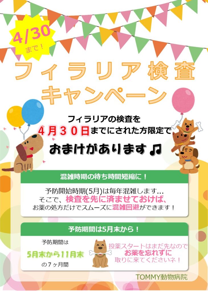 【ワンちゃん対象】早期フィラリア検査キャンペーン’26のお知らせ(4/30まで)