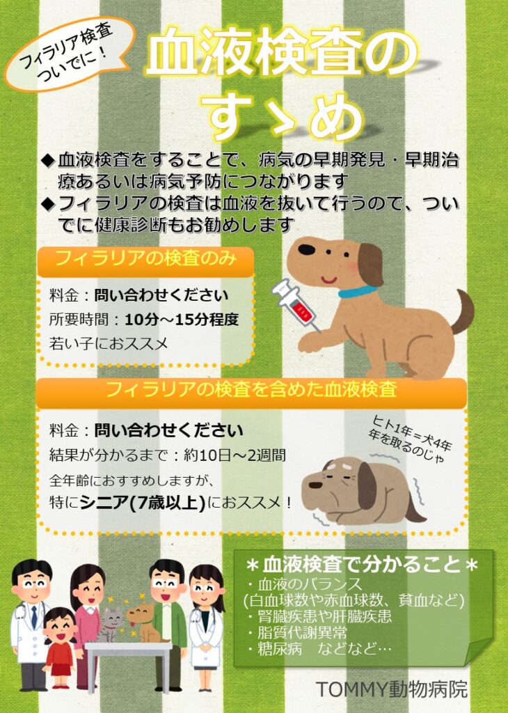 ●内容:フィラリアの検査(血液検査)をするとおまけがあります!