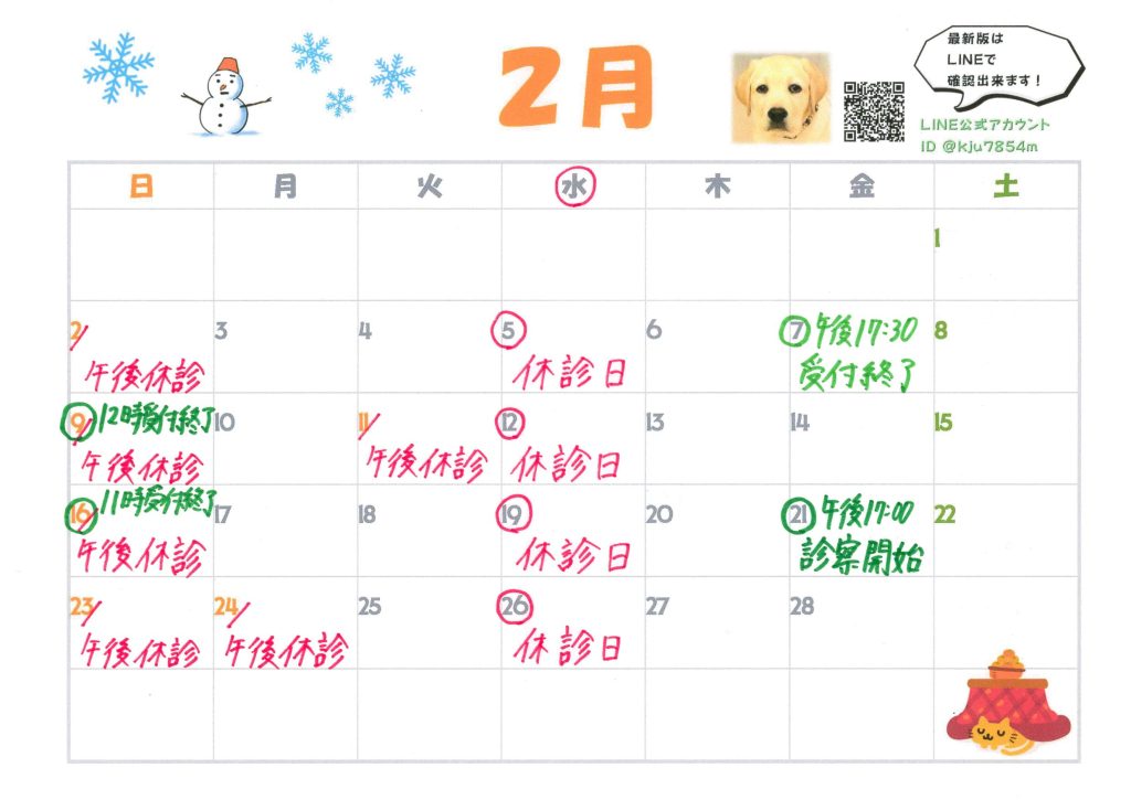 2月の診療カレンダー